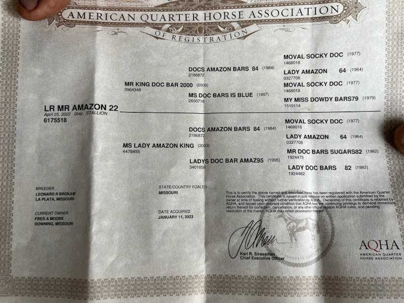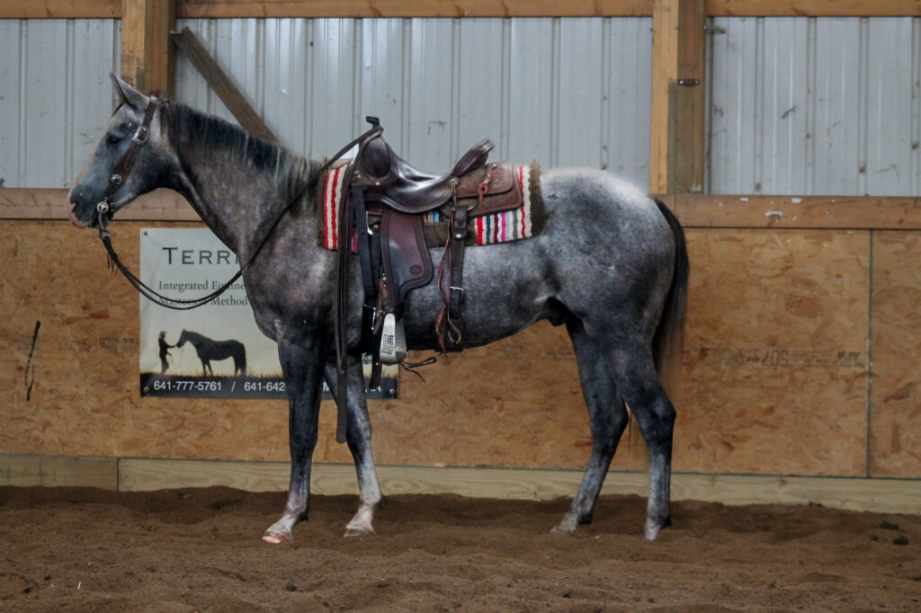 Amazon is a 3 year old grey-with strip, registered gelding QH that stands 14.2 HH. He has a good body and has a nice mind, he wants to please. He has 120 rides and totally gentle enough for the youngsters to get on and ride. Amazon is a family kind of horse, clean and sound. He is traffic broke and has been on the highway. FMI: 641-895-2697