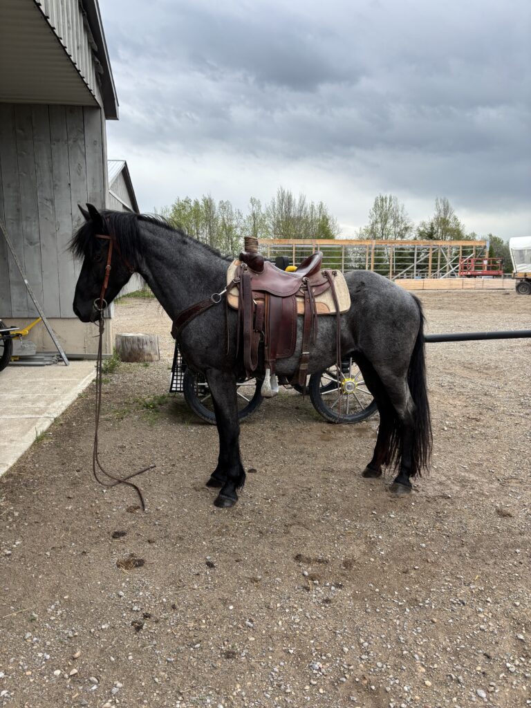 Estella is a 10 y/o open Friesian x blue roan mare. She stands 15.0 HH. She is very well trained and forward moving. She’s not spooky. She has been a broodmare for 4 years. She’s an accomplished riding horse & suitable for parades.