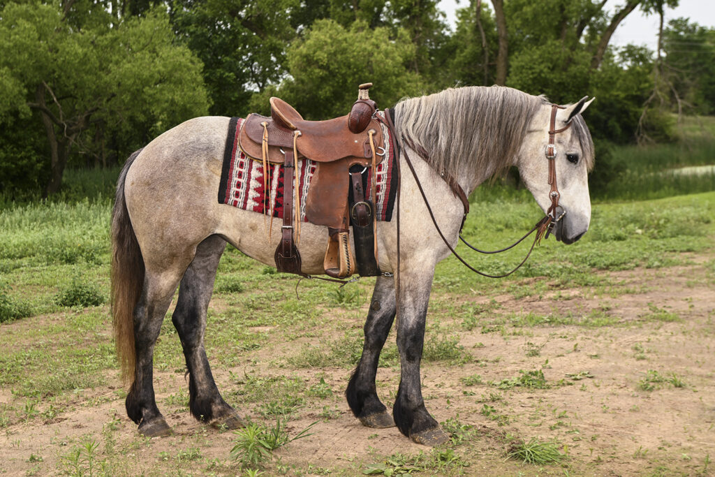 Reba, a 4 year old Gray Percheron Quarter/Horse Crossbred Mare. Stands approx 16 hands