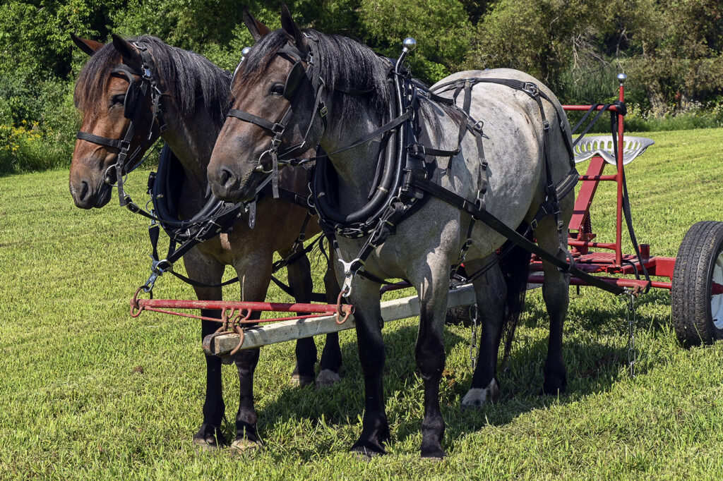 Rosie & Reba are a team of 3 y/o Percheron/Quarter Horse crossbred bay roan mare horses. They stand 15.3 HH. They are half sisters. They are both well broke to ride & drive single and double. They will drive on either side. They have been on most farm machinery as well as up & down the highway. They are well traffic broke. They are also well broke to ride. FMI call 920-672-7386.